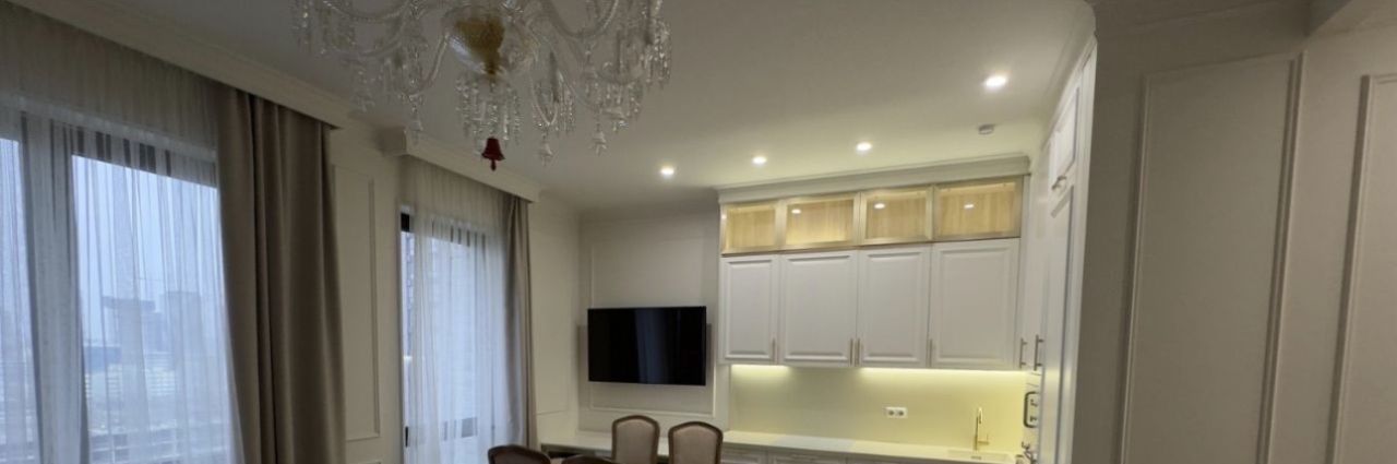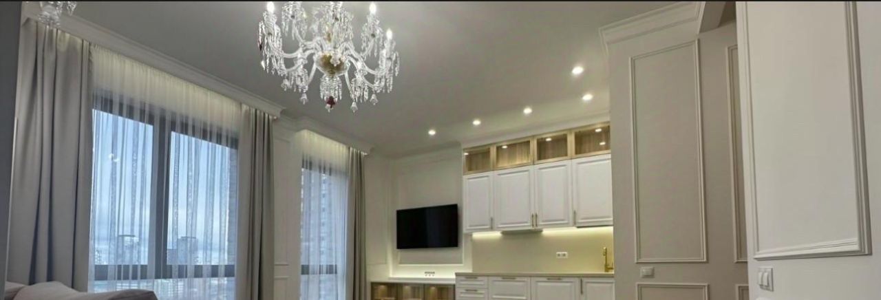 Квартира с дизайнерским ремонтом, где каждая деталь продумана до мелочей. В просторной кухне площадью 14 кв. м есть вся необходимая мебель и техника: холодильник, посудомоечная машина. В гостиной и спальне также есть вся необходимая мебель, кондиционер и телевизор для комфортного отдыха. В квартире два совмещенных санузла, один из которых оборудован душевой кабиной.