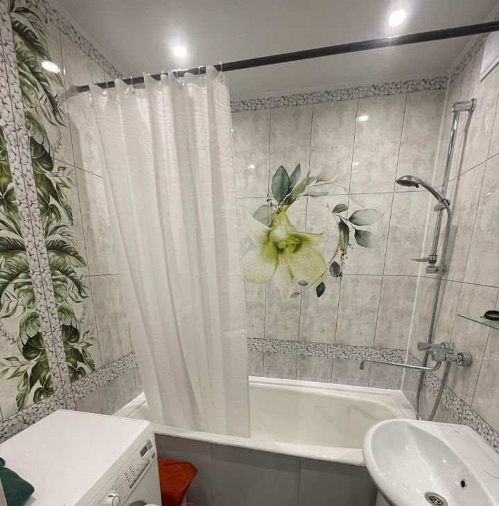 В квартире раздельный санузел с ванной. Высота потолков 2.64 метра.