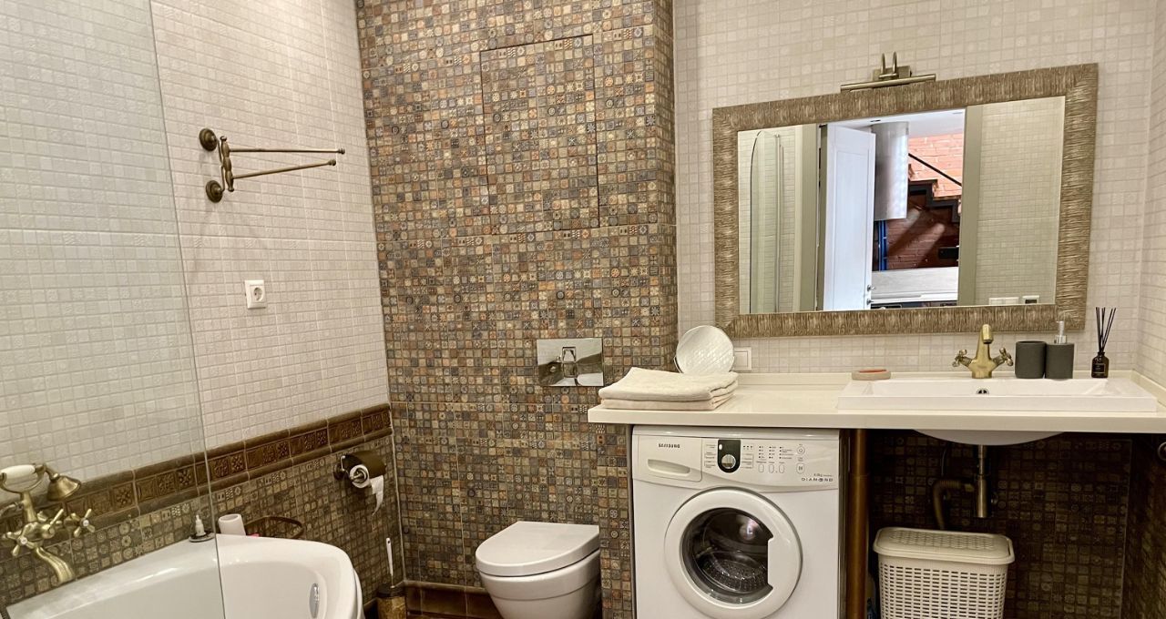 Современные апартаменты в премиальном жилом комплексе. Функциональная планировка включает в себя гостиную комнату, совмещенную с кухней и обеденной зоной. Кухня оборудована всей необходимой бытовой техникой, включая посудомоечную машину. Также на первом этаже есть полная ванная комната с джакузи. На втором этаже располагается спальня с собственной полной ванной комнатой и вместительной гардеробной. Также на втором этаже есть место для организации рабочего места.