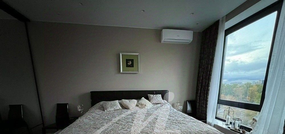 Квартира с великолепными видовыми характеристиками и панорамными окнами и высокими потолками.