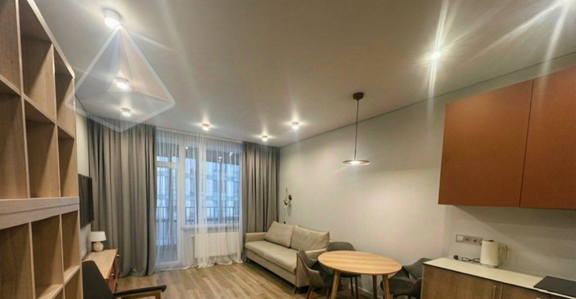 Кухня и жилые комнаты оснащены функциональной мебелью, вместительные шкафы, в спальне установлена комфортабельная кровать с премиальным матрасом. Санузел совмещенный, стильно оформлен и оборудован душевой кабиной, также имеется балкон.
