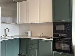 В квартире сделан современный дизайнерский ремонт с премиальной мебелью. Комнаты обставлены необходимой мебелью, а на кухне есть полный комплект мебели и техники, включая холодильник, посудомоечную машину и телевизор. Ванная комната оборудована и ванной, и душевой кабиной, что позволяет выбирать комфортный способ расслабления. Мастер-спальня, стиральная машина + сушилка, кофе-машина, духовой шкаф, микроволновка, гриль. Всё для комфорта и вашего удобства.