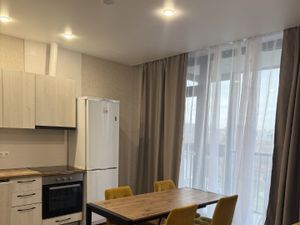 Квартира оснащена всей необходимой мебелью и бытовой техникой для комфортного проживания, включая посудомоечную машину, кондиционеры, теплые полы, датчики протечек.