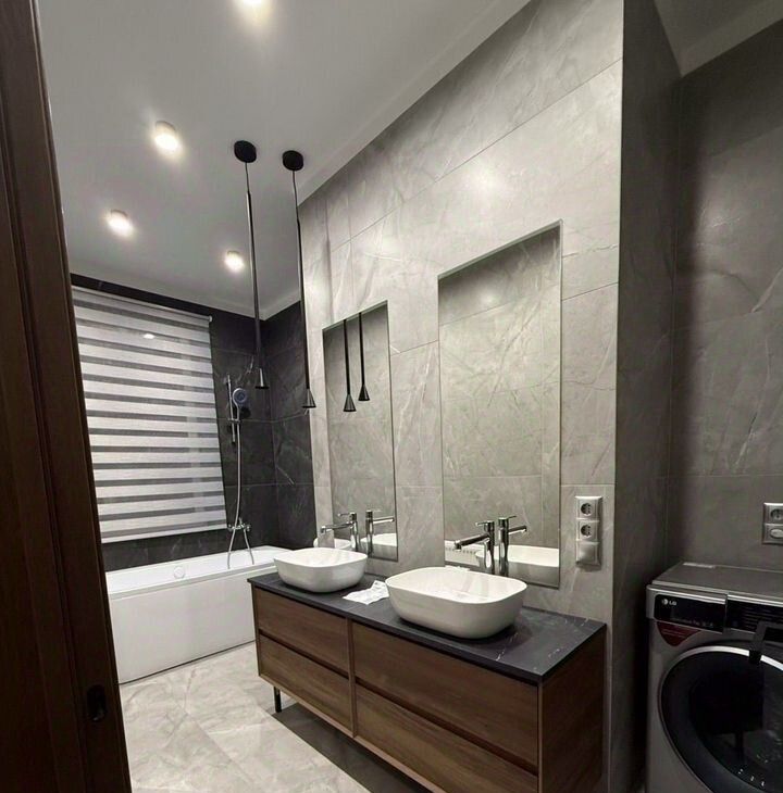 Квартира полностью меблирована и оборудована всей необходимой бытовой техникой для комфортного проживания: холодильник, стиральная машина, посудомоечная машина, питьевой фильтр для воды, плита, микроволновка, телевизоры, кондиционеры, увлажнитель воздуха. В квартире 2 санузла: с ванной и с душем.