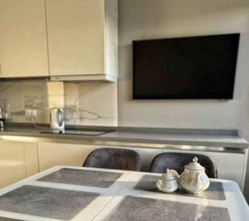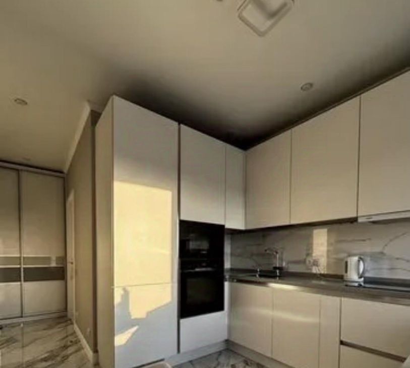 Техника в квартире: Кухня Мария со встроенными доводчиками Blum во всех шкафах и столешницей из натурального камня. Вся техника (Bosch), посудомоечная машина, индукционная плита, духовой шкаф, вытяжка, холодильник, СВЧ, чайник, стиральная машина, кондиционер. 2 телевизора Samsung во всех комнатах.