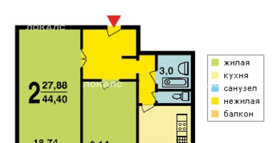2-к кв. Москва Ферганский проезд, 4 (46.4 м²)
