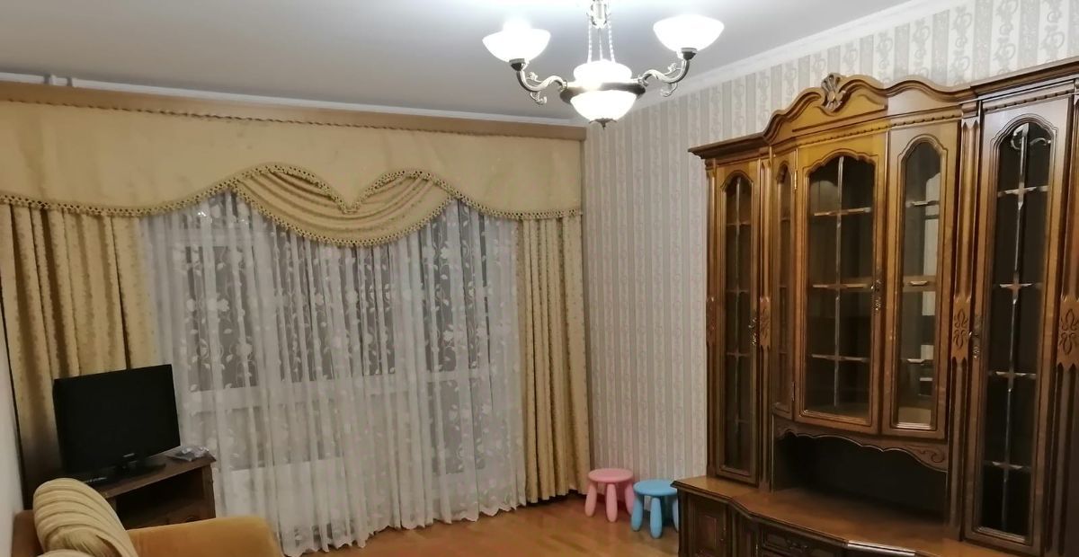 Квартира с евроремонтом, полностью готова для комфортного проживания. В комнатах и на кухне есть вся необходимая мебель. Из техники — холодильник, телевизор и стиральная машина. Высота потолков составляет 2.74 метра, окна выходят во двор, что обеспечивает тишину и покой. Есть лоджия и балкон, а также раздельный санузел с ванной.