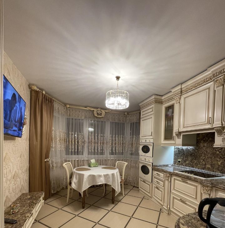 Квартира с качественным евроремонтом. Включает просторную кухню площадью 14 кв. м, где есть вся необходимая премиальная мебель и техника: холодильник, посудомоечная машина и стиральная машина. В комнатах также есть мебель, установлены кондиционеры.