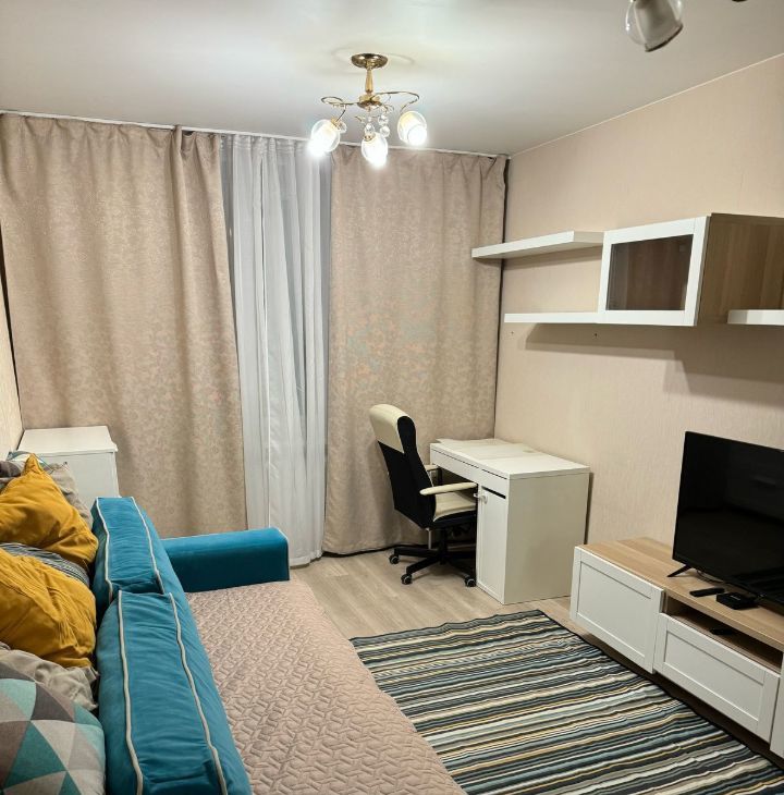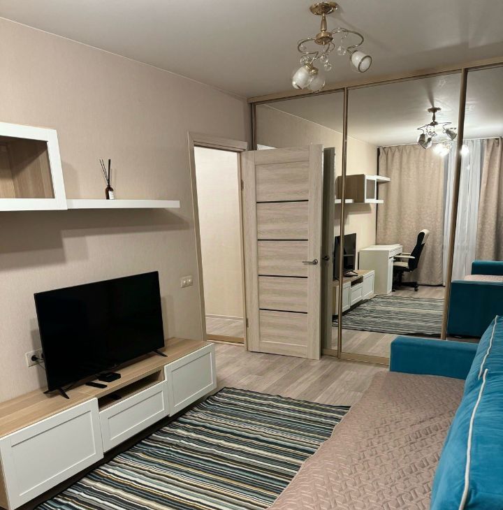 В квартире сделан современный евроремонт. Для вашего удобства она оснащена всей необходимой техникой: телевизором, стиральной машиной и холодильником. Ванная комната оборудована ванной, что добавляет комфорта. В квартире есть мебель как на кухне, так и в комнате, поэтому можно сразу заехать и жить.
