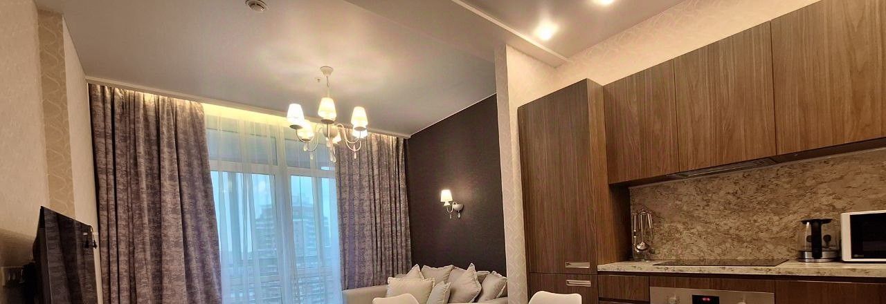 Квартира полностью меблирована и оснащена современной бытовой техникой от ведущих мировых производителей.