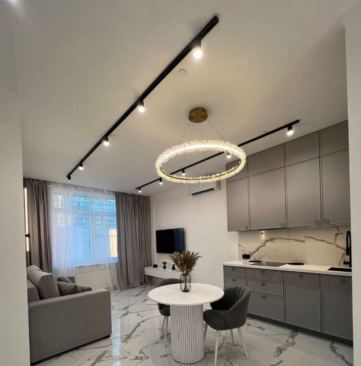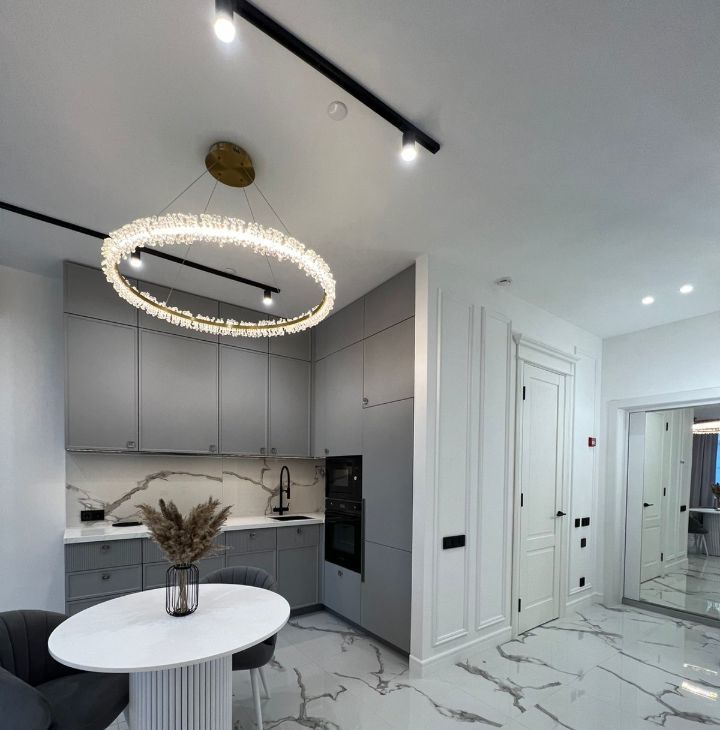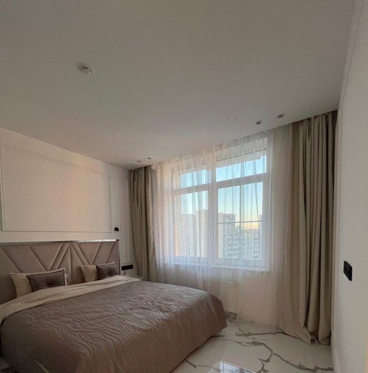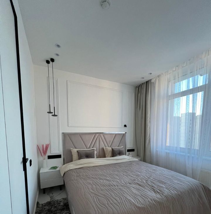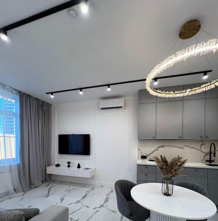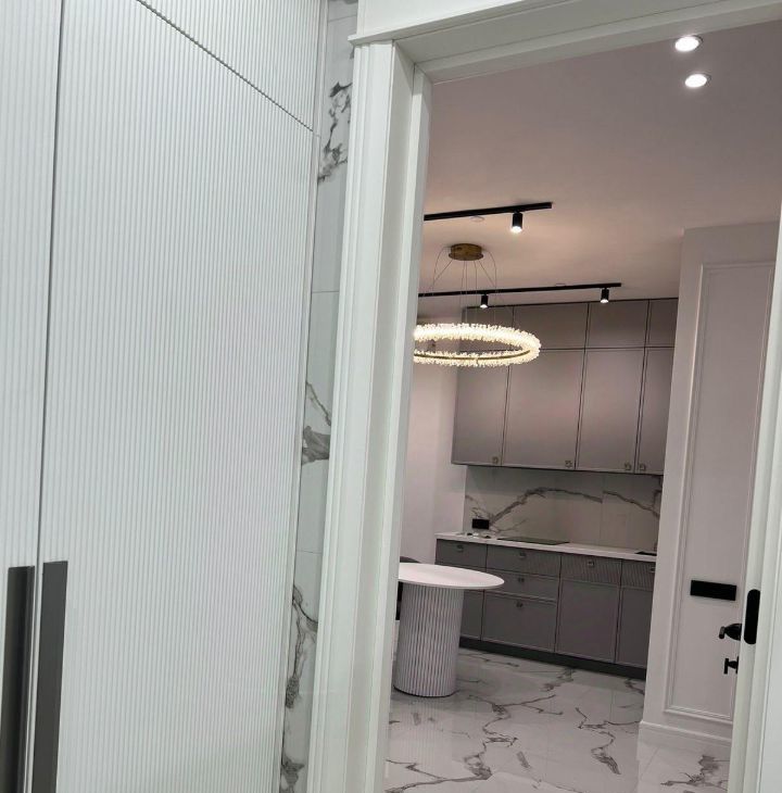 В квартире сделан дизайнерский ремонт, что создаёт атмосферу современного уюта. Просторная кухня гостиная, оборудована всем необходимым: холодильником, посудомоечной машиной и стиральной машиной. В комнатах есть мебель, а также кондиционер и телевизор. Совмещённый санузел оснащён ванной, что позволит вам расслабиться после насыщенного дня. Две большие гардеробные, одна при входе в квартиру и вторая непосредственно в спальне с хранением, отдельная комната гардеробная. Плюс есть два больших шкафа для одежды.