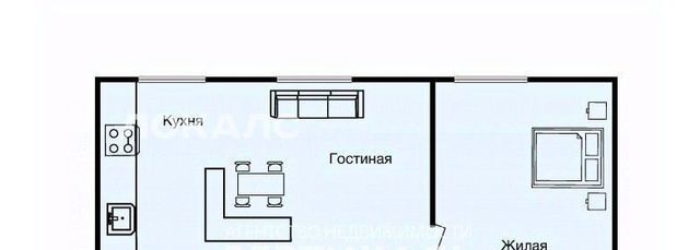 Планировка : кухня - гостиная, спальня, санузел (ванная)