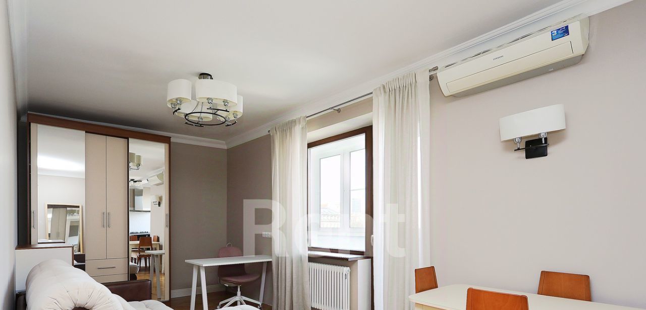 БЕЗ КОМИССИИ ДЛЯ АРЕНДАТОРА. В историческом центре, недалеко от метро "Кропоткинская" предлагается комфортабельная двухкомнатная квартира. Планировка включает гостиную, объединенную с кухней, и уютную спальню. Кухня оборудована бытовой техникой, включая посудомоечную машину и духовую печь. Для комфорта установлены сплит-системы и теплые полы. Из окон открывается вид на здание МИД.