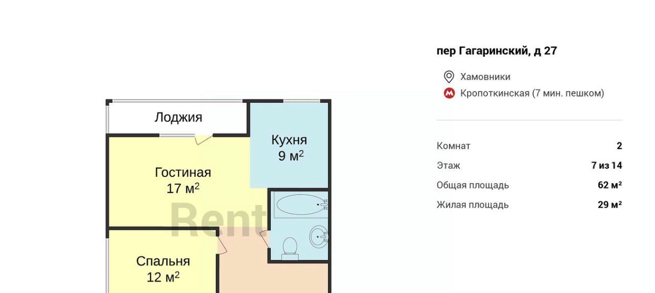 2-к кв. Москва Гагаринский пер., 27 (62.0 м²)