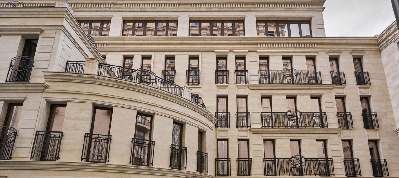 Безупречный фасад в классическом стиле (натуральный итальянский камень, все окна в пол), презентабельная входная группа (мрамор/латунь/дерево/зеркала), круглосуточная охрана, консьерж. В доме всего 20 апартаментов, солидные соседи.