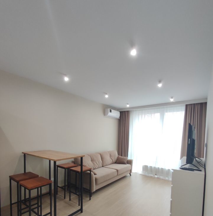 Предлагаю в аренду квартира в ЖК "Профит". Квартира оборудована всем необходимым для комфортного проживания. Встроенная кухня со всей необходимой бытовой техникой: посудомоечная машина, микроволновая печь, холодильник. в зоне гостинной диван, комод, телевизлр, кондиционер. В спальне: двух спальная кровать, шкаф купэ, при кроватные тумбы, телевизор.
