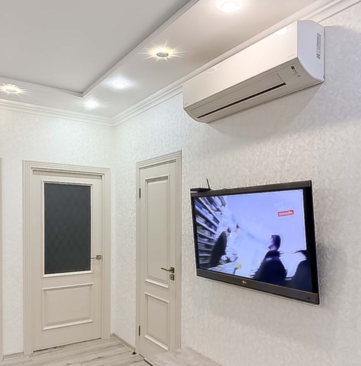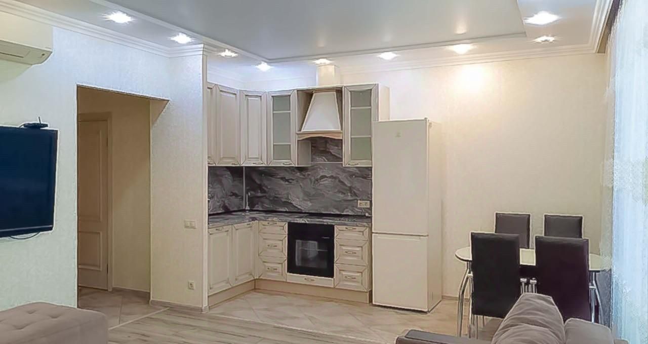 В квартире сделан качественный евроремонт, на кухне и в комнате есть вся необходимая мебель. Из техники установлены кондиционер, холодильник, посудомоечная машина, телевизор и стиральная машина — всё для вашего комфорта. Планировка включает один совмещённый и один отдельный санузел, в ванной комнате установлена душевая кабина. Окна выходят на улицу, а значит, в квартире всегда будет достаточно света и свежего воздуха.