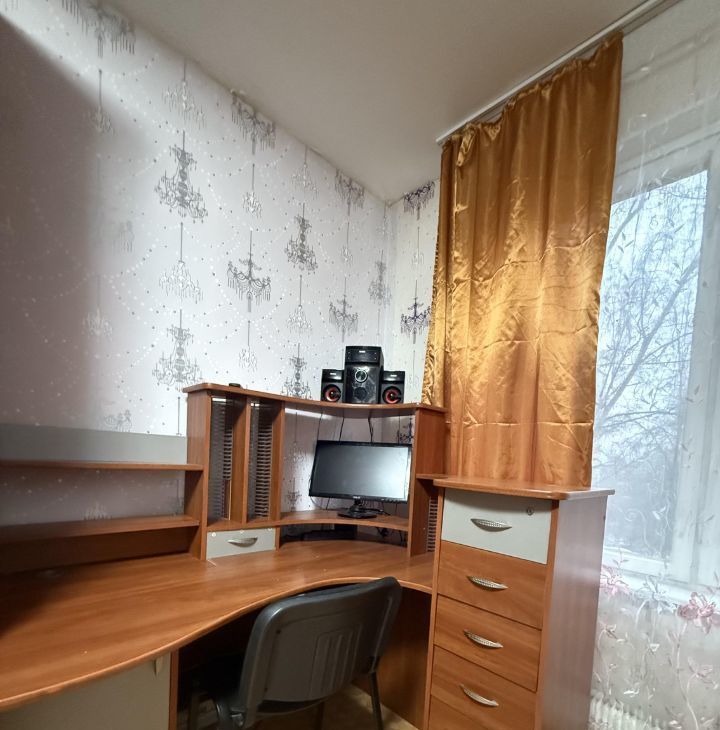 Комнаты раздельные, спальных мест три, все диваны раскладываются, много шкафов для хранения вещей, имеется письменный стол.