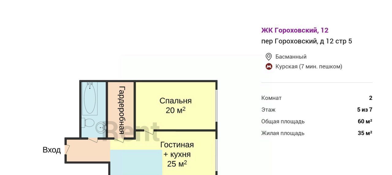 2-к кв. Москва Гороховский пер., 12с5 (60.0 м²)