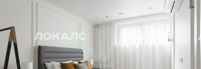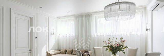 Квартира с 2-мя спальнями площадью 69 м² в доме делюкс-класса на 27 квартир в Пресненском районе. Квартира расположена на -1 этаже. Выполнен авторский ремонт в стиле современной классики. Интерьер оформлен в светлых тонах, стены декорированы молдингами. Спланирована уютная кухня-гостиная, оборудованная бытовой техникой, 2 спальни с двуспальными кроватями, санузел с премиальной сантехникой Villeroy&Boch и холл.
