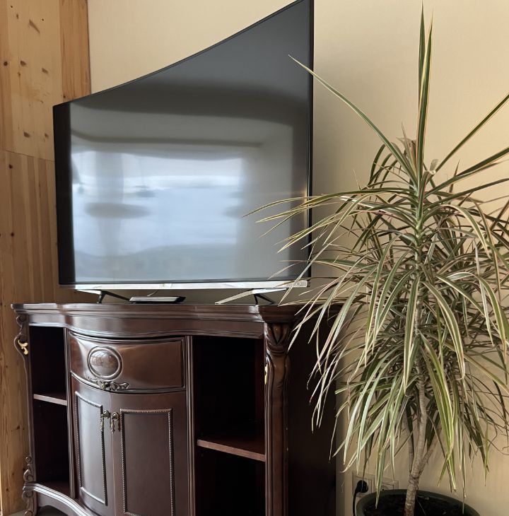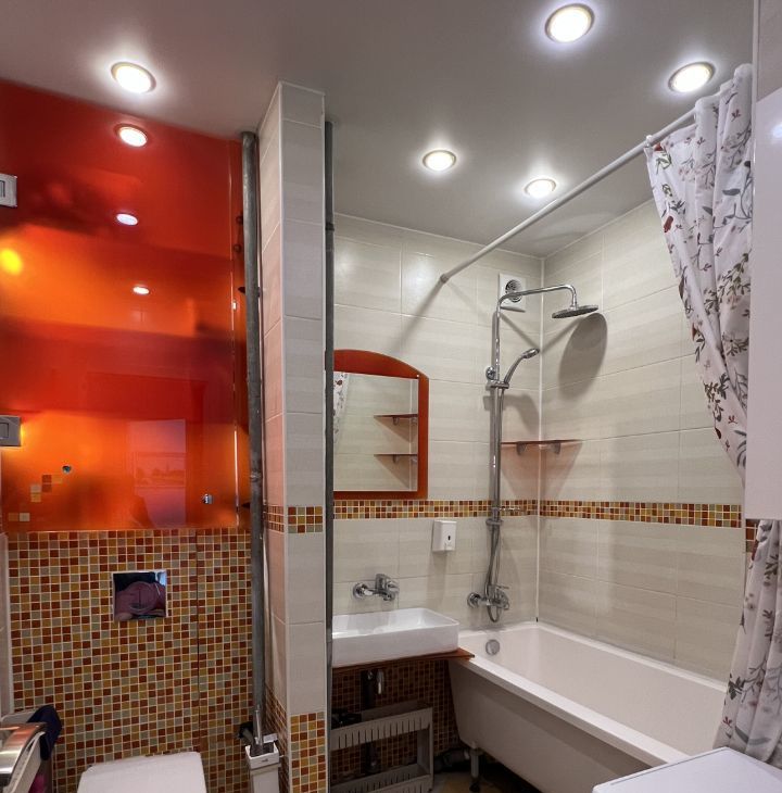 Два санузла (второй небольшой делался для ребёнка), Телевизор, новая двуспальная кровать, диван фабрики 8 марта.