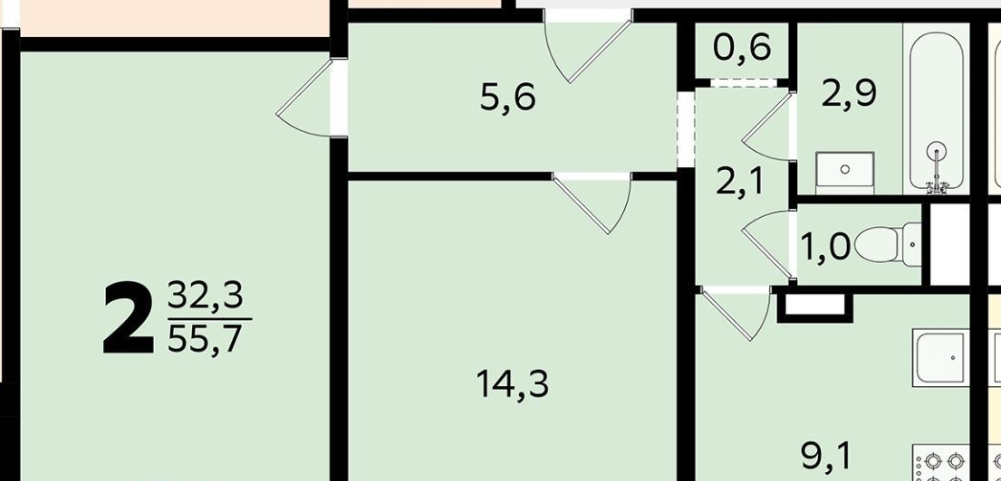 2-к кв. Москва Гурьевский проезд, 19К3 (55.7 м²)