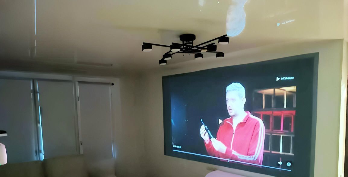 - В большой комнате установлен проэктор диагональ изображения более 110"