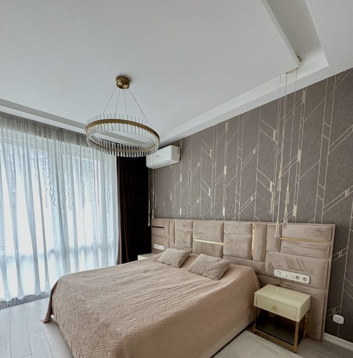 Квартира с просторной кухней-гостиной и отдельной спальней.