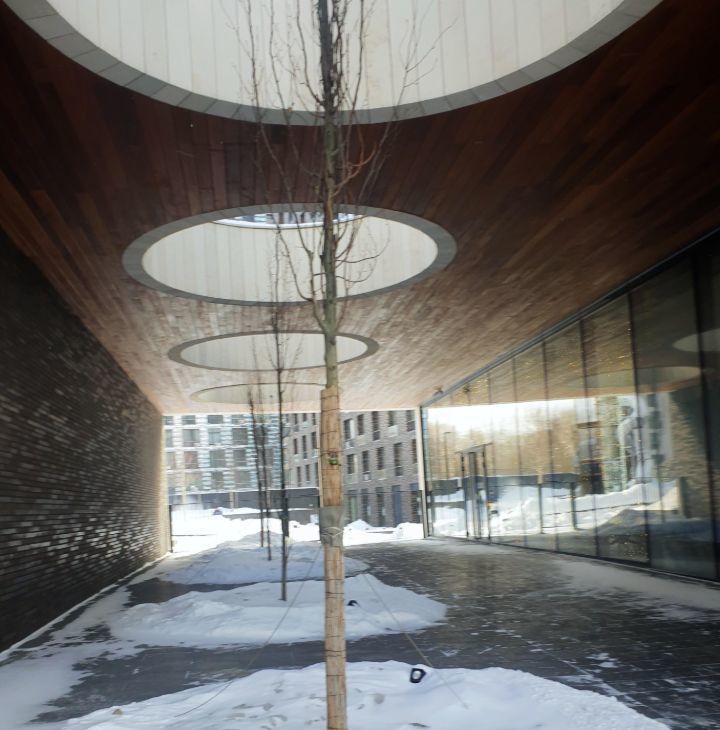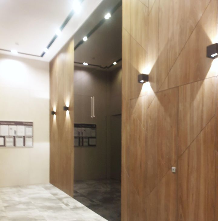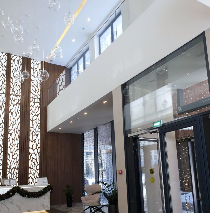 На первых этаж студии красоты, детские активности, кафе, аптеки, азбука вкуса.