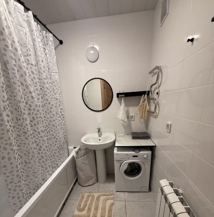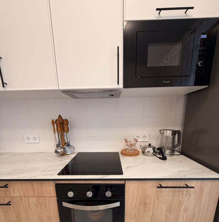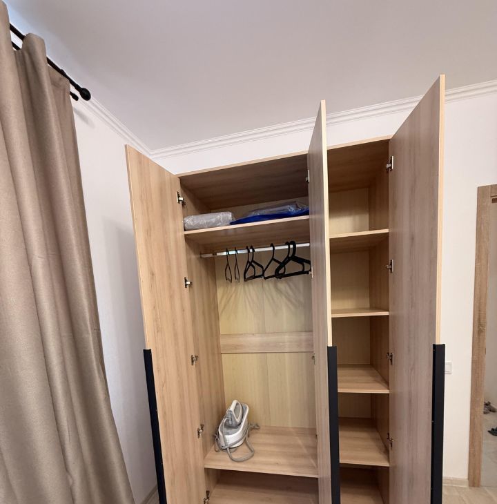 А так же : утюг, гладильная доска, сушка для белья, комплект кастрюль и столовой посуды. застекленный балкон. Есть все для комфортного проживания.