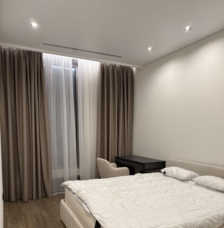 В квартире есть вся необходимая техника и мебель для комфортного проживания: холодильник Liebherr, варочная панель, духовой шкаф и посудомоечная машина Bosch, стиральная и сушильная машины Asko, водонагреватель, система центрального кондиционирования.