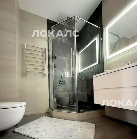 Из техники: кондиционер, холодильник, телевизор, стиральная и посудомоечная машины. Санузел совмещённый, с современной душевой кабиной.