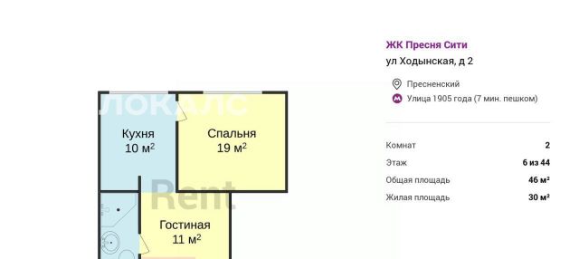 На охраняемой территории комплекса предусмотрены паркинг и фитнес. Рядом - магазины, салоны красоты, кафе, рестораны, медклиники и учреждения образования. В 9-10 минутах - парк Декабрьского восстания и метро "Улица 1905 года". Удобный выезд на ТТК, Звенигородское и Ленинградское шоссе.