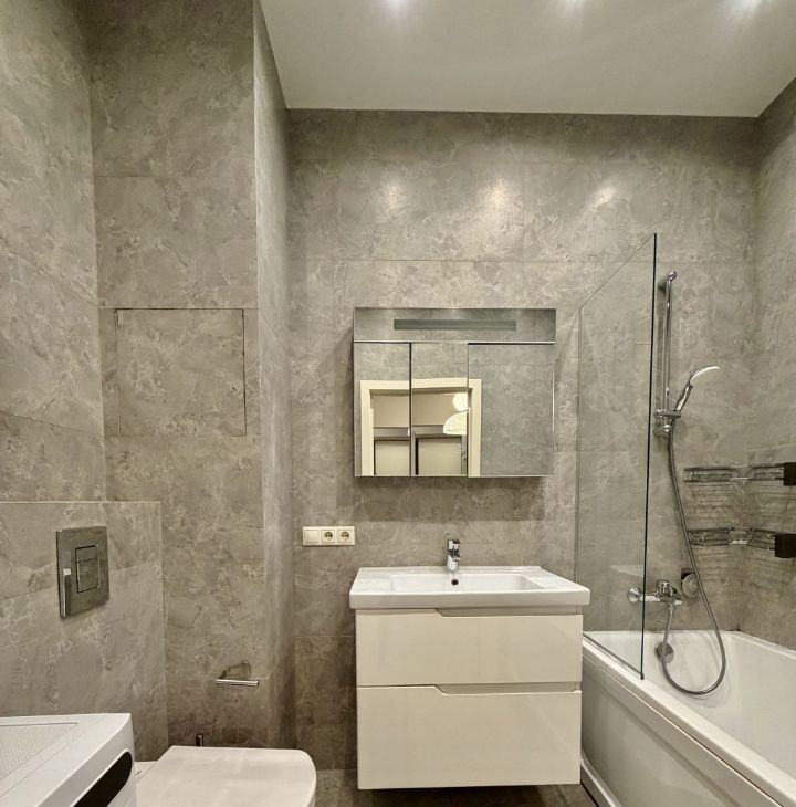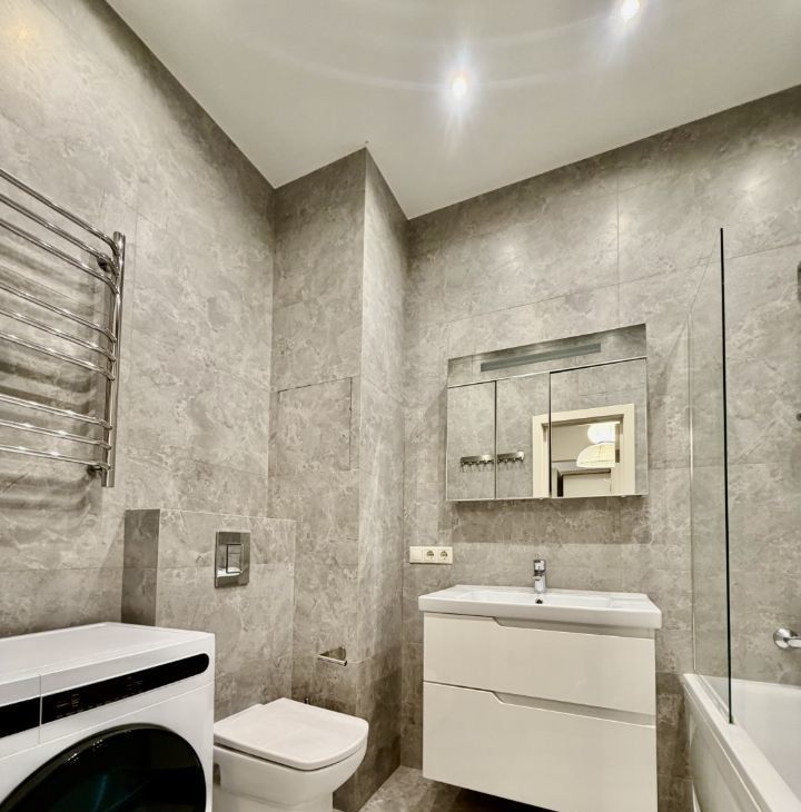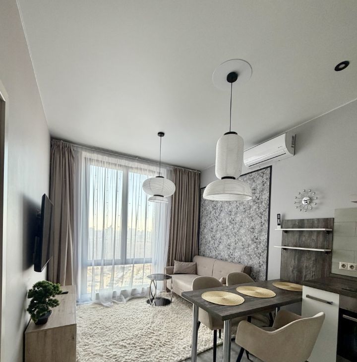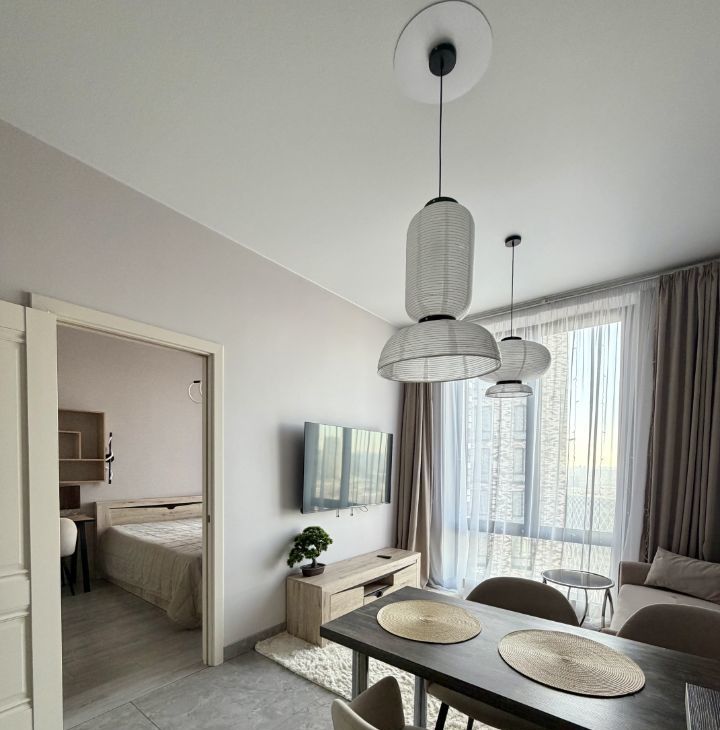 Сдается в аренду квартира после ремонта , с новой мебелью 47м2. 2 большие гардеробные, вся бытовая техника, стиральная машина с сушкой. отдельная спальня, роскошный прямой вид на город . Раскладной диван в гостиной. Квартира очень теплая.