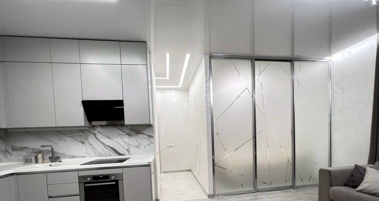 Пространство организовано рационально: уютная гостиная совмещена с кухней, оборудованной всей необходимой техникой и мебелью, и отдельная спальня. Вся мебель и техника, что позволяет заселиться буквально с одним чемоданом.