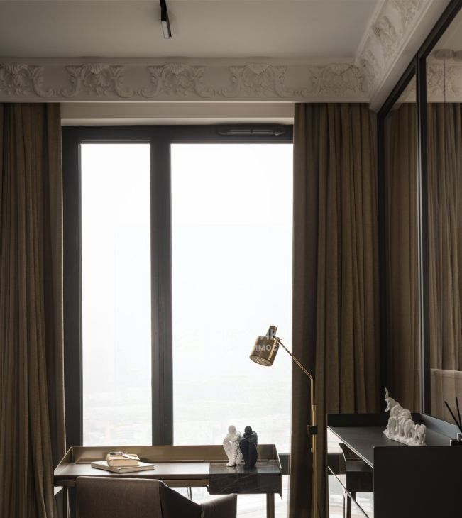 Интерьер в стиле неоклассики выполненный дизайн бюро на уровне архитектурных журналов.