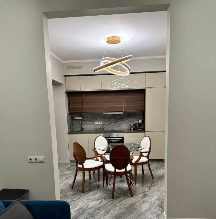 Апартаменты с евроремонтом, полностью меблированы и готовы к проживанию. В вашем распоряжении есть кондиционер, холодильник, посудомоечная машина, телевизор и стиральная машина. В кухне и комнате установлена современная мебель, а в ванной комнате — удобная ванна. Просторная планировка позволяет наслаждаться комфортом и уютом.