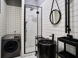 Имеется вся необходимая мебель и бытовая техника, кондиционер, телевизор, wi-fi роутер, стиральная машина, холодильник, кухонная техника, посуда.