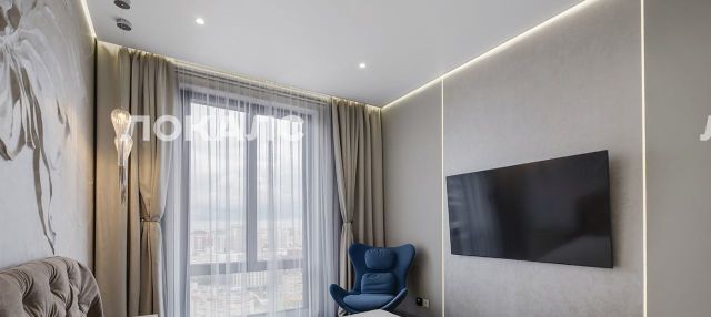Удобная планировка: кухня-гостиная и 2 изолированные комнаты. За счет высоких потолков (3 м.) создается ощущение простора, а панорамное остекление пропускает в квартиру большое количество солнечного света. С 19 этажа открывается красивый вид на Москву.