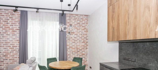 В квартире сделан дизайнерский ремонт, что придает ей стильный и современный вид. Просторная кухня площадью 16 кв. м оборудована всей необходимой техникой: холодильник, посудомоечная машина и кондиционер. В комнатах и на кухне есть мебель. В квартире два совмещенных санузла, в одном из которых установлена душевая кабина. Для вашего комфорта предусмотрены телевизор и стиральная машина.