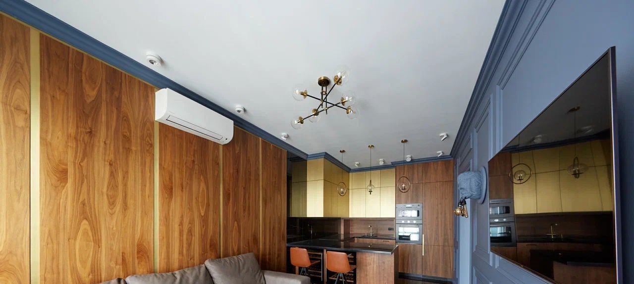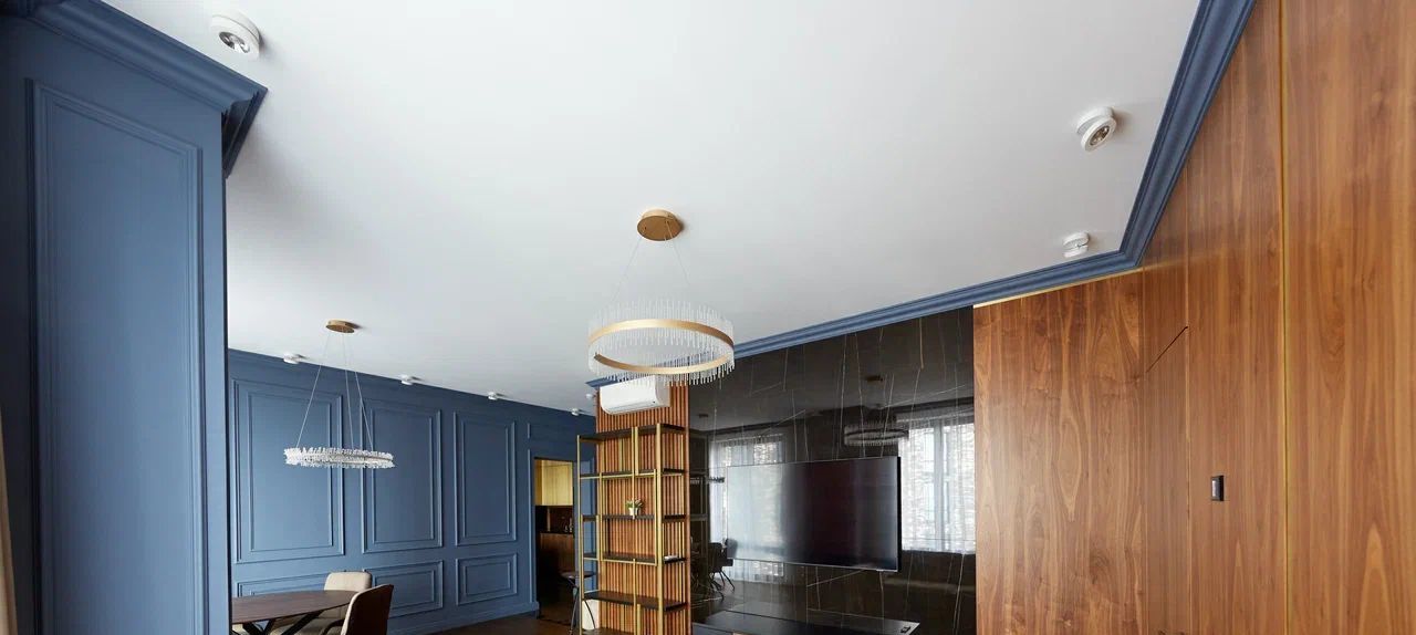 Ремонт выполнен по индивидуальному авторскому проекту с шумоизоляцией и использованием премиальных экологичных материалов (натуральный паркет, стеновые панели из натурального шпона, мягкая мебель из натуральной кожи).
