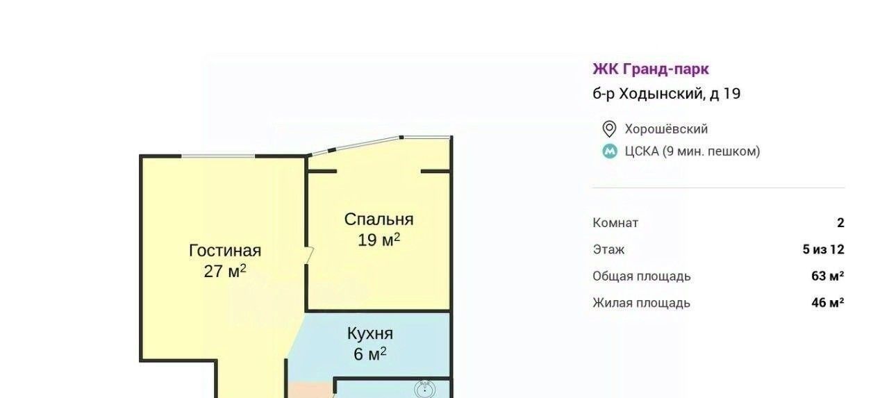 2-к кв. Москва Ходынский бул., 19 (63.0 м²)