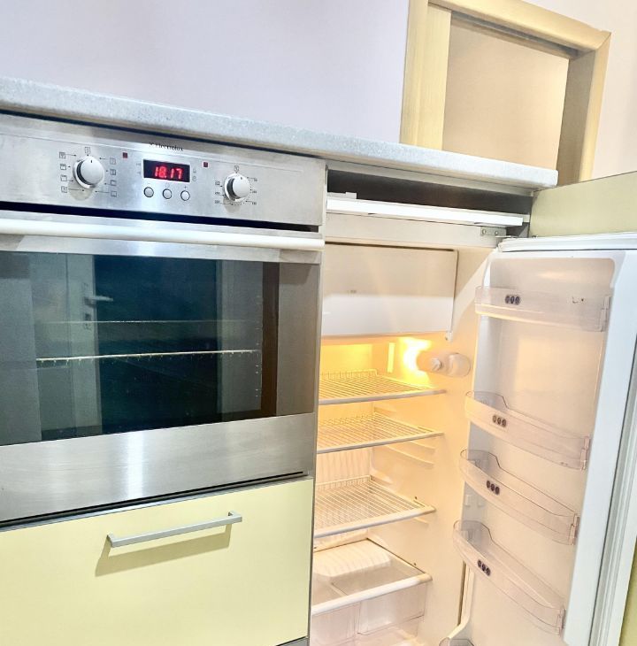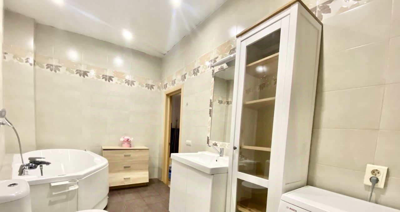 2х комнатная квартира с большим балконом. В спальне 2х спальная кровать, прикроватная тумба, торшер, шкаф. В ванной стиральная машина BOSH,шкафчик со стеклянными дверями. Гостиная-тумба .Кухня полностью оборудованная недавно обновлённая-посудомойка, варочная панель электрическая духовка ,два холодильника.