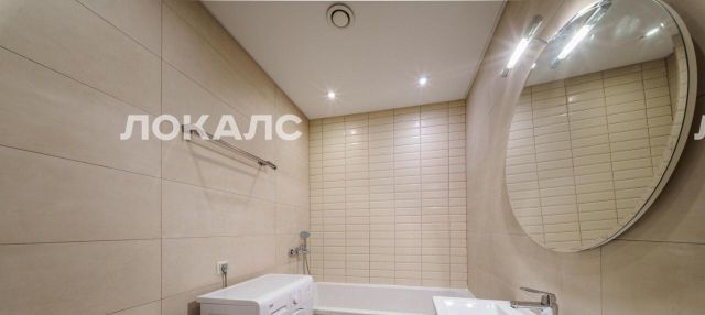 В квартире один совмещенный санузел с ванной, раковиной, зеркалом с подсветкой и стиральной машиной.