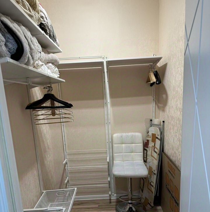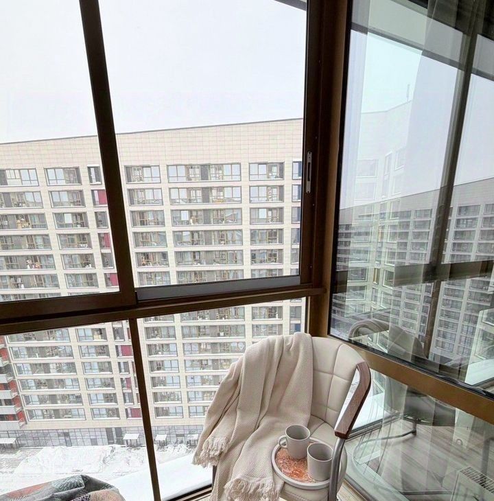 Из мебели присутствуют шкафы и гардеробная. Из окон открывается вид на город. Лоджия застеклена и утеплена.