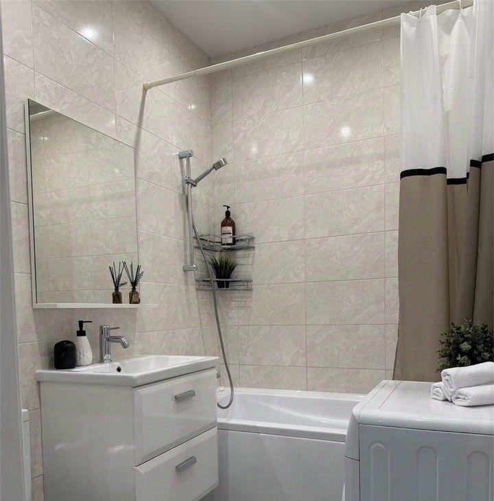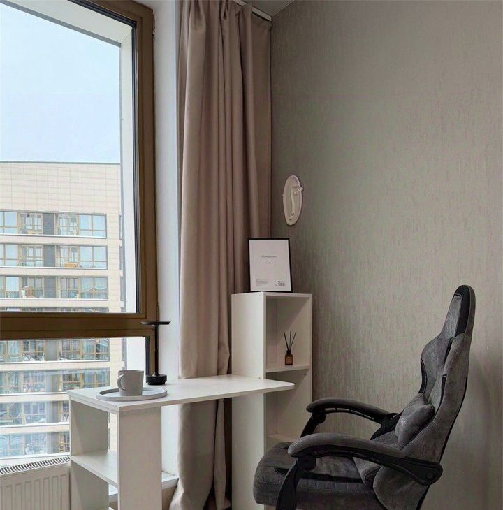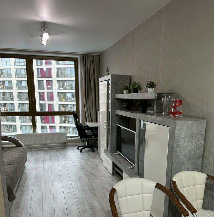 В квартире дизайнерский ремонт, изолированные комнаты и совмещенный санузел. Просторная кухня оснащена необходимой бытовой техникой, включая посудомоечную машину. В гостиной зоне установлен удобный диван и рабочий стол.
