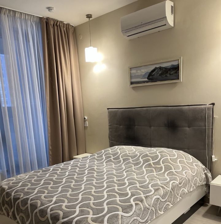 ЖК Лайнер-Запад. Уютная 2-комнатная квартира в доме бизнес класса. Этаж 5 / 15. Спальня: 1, санузел: 1. Общая площадь: 47 кв.м. Потолки 3 м. Квартира укомплектована премиальной мебелью (Boconcept) и техникой (Bang&Olufsen). Окна во двор. В наличии: шкафы и гардеробы, посудомоечная машина, холодильник, кондиционеры в каждой комнате, душевая кабина, стиральная машина, телевизор в каждой комнате, высокоскоростной интернет
