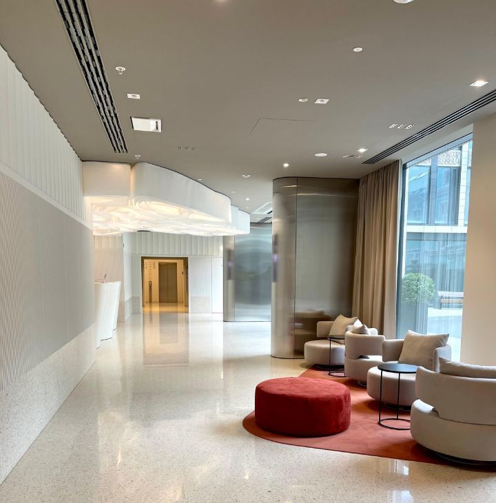 Стильная входная группа, 4 скоростных бесшумных лифта, круглосуточная охрана, видеонаблюдение. К услугам жильцов мобильное приложение умный дом и круглосуточный консьерж-сервис с разнообразием услуг. В доме есть подземный паркинг и парковочное место ( по запросу ).