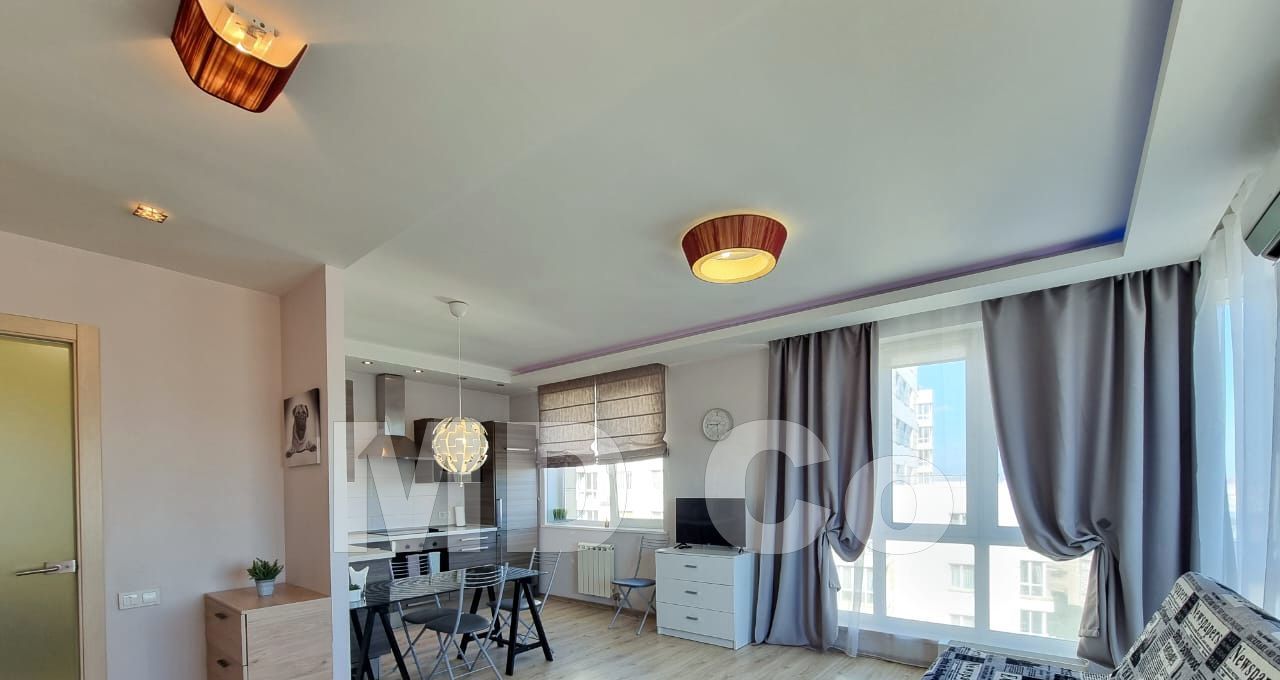 Квартира укомплектована всем необходимым для комфортного проживания, вся бытовая техника и мебель в наличии в отличном состоянии. Кухонный гарнитур со встроенной техникой. Установлена система кондиционирования воздуха. ЖК-Телевизор. Санузел совмещён, полностью в современной плитке. Интернет. Домофон. За дополнительную плату можно арендовать машино-место в подземном паркинге в этом же доме.