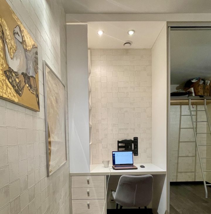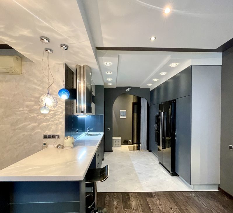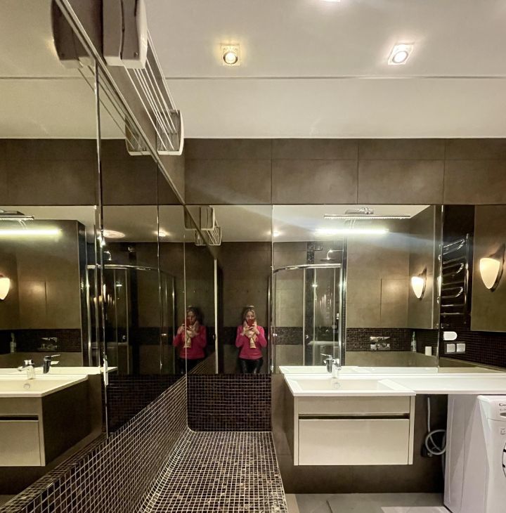 Квартира оборудована всей необходимой техникой, в тч посудомоечная машина, большой холодильник, 2 кондиционера, телевизоры, теплый пол. Сделана качественная звукоизоляция (соседей как-будто нет). Есть рабочая зона и гардеробная.